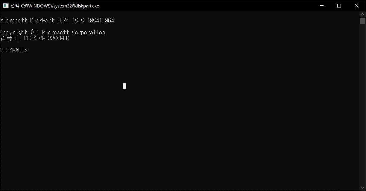 2. 명령프롬프트에 diskpart 입력.